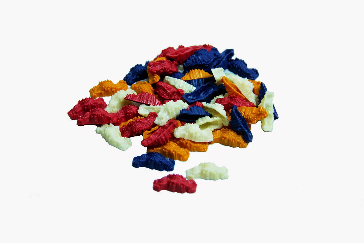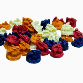Игровые фишки четырёх цветов (16 городов, 20 поселений, 60 дорог)