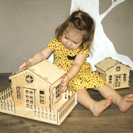 При сборке детали соединяются между собой, как конструктор в пазы. После сборки дом можно покрасить или покрыть лаком и даже поклеить обои, прекрасное "поле" для творчества. Состоит из абсолютно безопасных материалов для детей, кукольный дом из фанеры. Детали вырезаны лазером, ровные края. Купить кукольный эко домик можно под новогоднюю ёлочку.