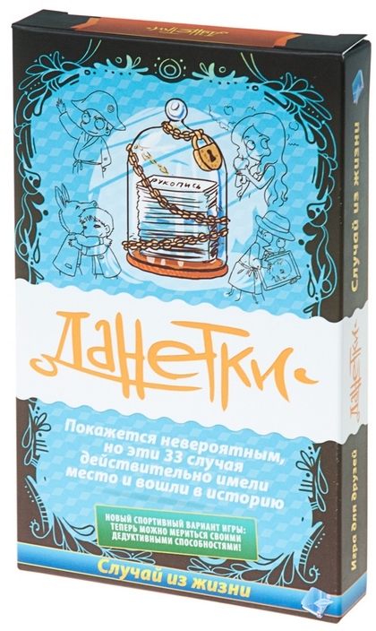 Жизнь иногда бывает очень запутанной, с чем нас и познакомит увлекательная настольная игра Данетки Случай из жизни. Обратите внимание, что эта версия полностью на русском, почему теперь в нее играть могут даже малыши, не знакомые с иностранными языками. Как и всегда, вам предстоит разгадывать ситуацию, имея на руках лишь крупицы информации. В этом помогут наводящие вопросы, правда, и тут подвох – ответы на них будут только односложные, поэтому нужно тщательно подбирать слова, чтобы узнать как можно больше. Поверьте, все участники точно останутся довольны, ведь не зря оригинальная версия получила награду «Лучшая игра 2013» среди россиян.