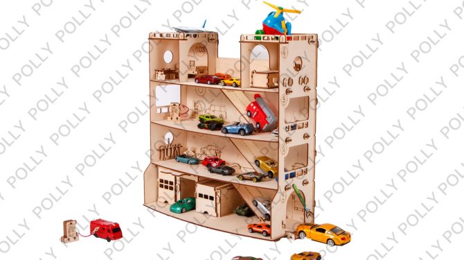 Детская парковка из фанеры порадует любого юного автолюбителя. Парковка из дерева имеет 4 уровня, парковаться могут машинки до 15 см. Есть три бокса с воротами и даже вертолетная площадка. Подарите такую парковку, и множество машинок перестанет валяться на полу. Ребенок с удовольствие паркует машинки, а мама радуется порядку дома!