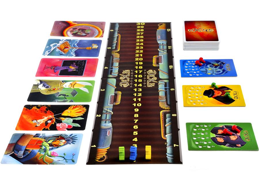 Диксит Вечеринка. Этот вариант игры рассчитан на 6-12 участников. Главное отличие от основного режима игры заключается в том, что рассказчик произносит фразу, которая непосредственно не относится к его картам.