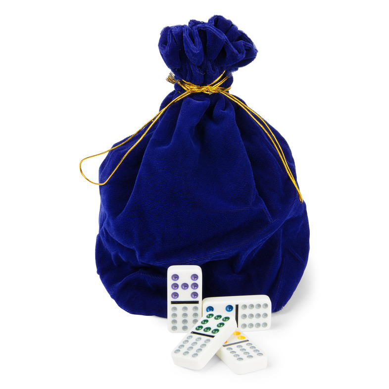 Домино с цветными точками в синем бархатном мешочке (12 точек)