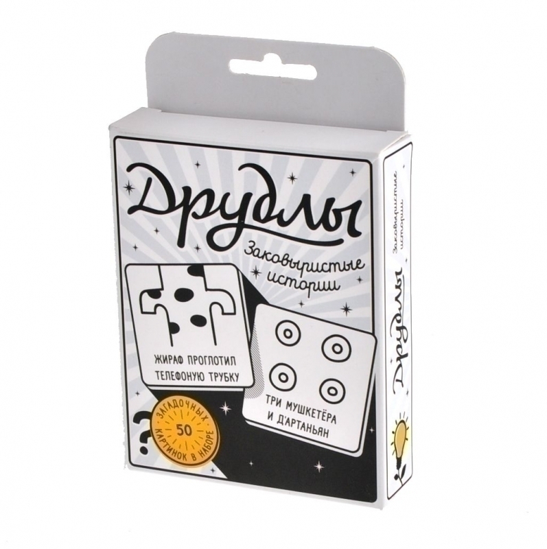 Друдлы – глядя на такое название, мало кто сможет понять смысл игры, и давайте мы сейчас объясним. Друдлы представляют собой карточки, где нарисовано что-то, не попадающее под определение рисунок или картина. Это каракуля, при взгляде на которую у человека могут возникать различные ассоциации. Вот тут-то и раскрывается вся соль – нужно увидеть ассоциацию, придумать историю и хорошо ее рассказать, чтобы остальные участники могли ее оценить по достоинству.