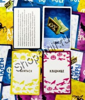 В одной страшной, страшной игре, где нет ни начала, ни конца, все было как обычно. Карточки, которые передают захватывающую историю, карточки с картинками, которые пробуждают фантазию. Включите воображение, логику, рассудок и сочините свое продолжение истории. Как играть?Раскладываете карточки по колодам, голубые-предметы и герои, желтые-действия, фиолетовые-место события. Потом, каждый поочередно тянет карточку и каждой колоды и начинает свою историю рассказа. Кому пригодитсяЛюбителям посочинять! Приходите к нам, чтобы фанты купить! |