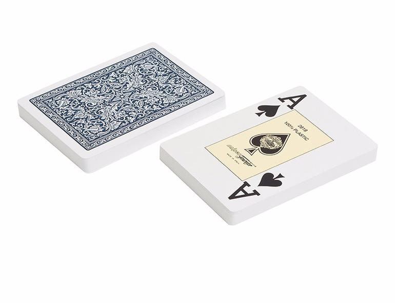 Карты несколько шероховаты, благодаря чему они не скользят в руке и между собой, но при этом – не слипаются друг с другом, поэтому легко поддаются тасовке. Пластик не боится воды, поэтому карты можно беспрепятственно мыть, даже после каждой игры. Покрытие карты не истирается со временем, поэтому они всегда выглядят как новые.