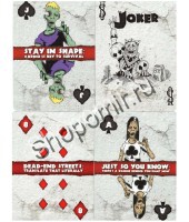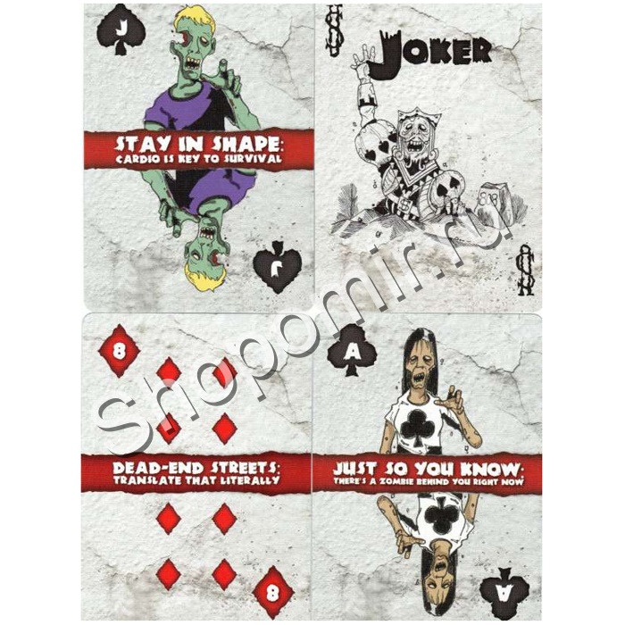 Дизайн колоды нарисован в мультяшном стиле, не вызывает отвращения, а только интерес и улыбку. Живые мертвецы в наше время стали очень популярными персонажами различных игр, сериалов или мультфильмов. И вы обязательно оцените черный юмор этих карт, так как каждая карта содержит совет по выживанию от зомби. Колода карт байсикл отличается интересным дизайном и прекрасным качеством. |