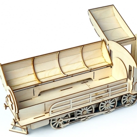 У собранной модели конструктора из фанеры открывается отсек основания и крышка кабины машиниста. Можно использовать, как пенал или использовать, как подарочную коробку и подарить коллеге или начальнику. Такой предмет интерьера всегда привлечет внимание гостей.