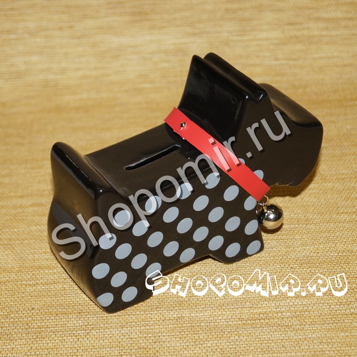 Копилка ''SilverDots'' или же просто: «Серебряный горошек» сделана в виде черного песика.