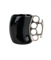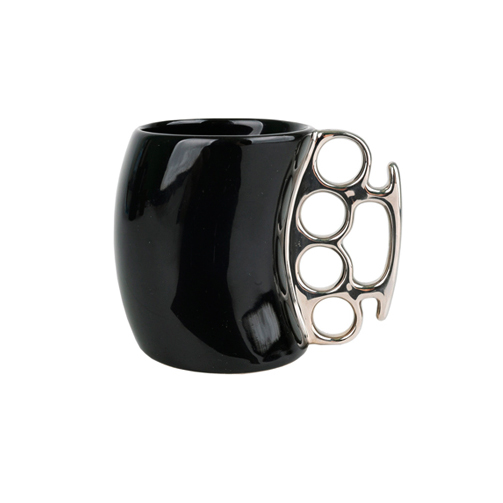 Стильная кружка из керамики с ручкой в виде кастета. |