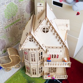 При сборке детали соединяются между собой, как конструктор в пазы. После сборки дом можно покрасить или покрыть лаком и даже поклеить обои, прекрасное "поле" для творчества. Состоит из абсолютно безопасных материалов для детей. Детали вырезаны лазером, ровные края.