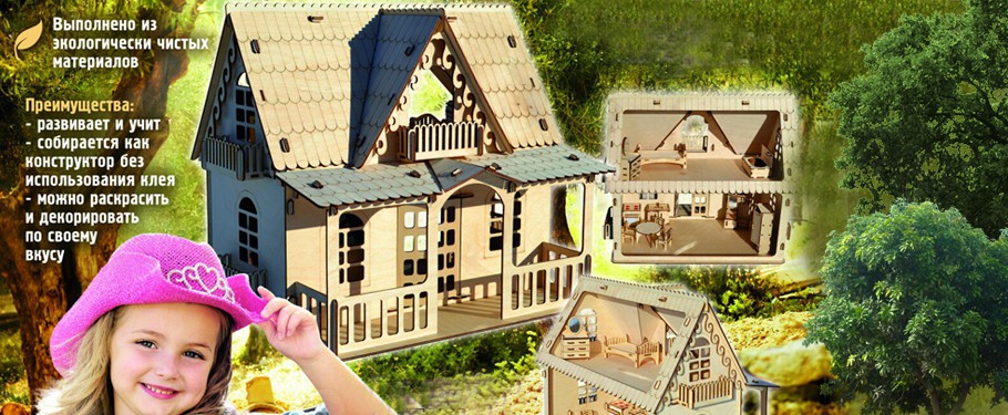 Это не просто конструктор, но и развивающая и увлекательная игрушка для детей. При сборке детали соединяются между собой, как конструктор в пазы. После сборки дом можно покрасить или покрыть лаком и даже поклеить обои, прекрасное "поле" для творчества. Состоит из абсолютно безопасных материалов для детей. Детали вырезаны лазером, ровные края.