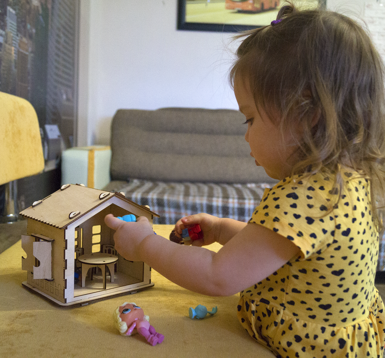 При сборке детали соединяются между собой, как конструктор в пазы. После сборки дом можно покрасить или покрыть лаком и даже поклеить обои, прекрасное "поле" для творчества. Состоит из абсолютно безопасных материалов для детей. Детали вырезаны лазером, ровные края.