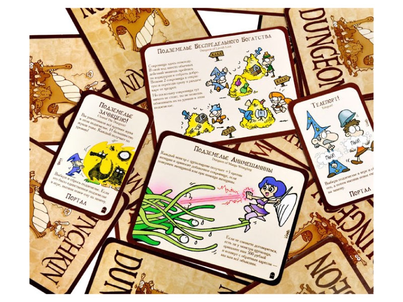 Считаете себя любителем Манчкина, но вам хотелось бы чего-то нового? Тогда это дополнение создано специально для вас. Теперь вас ждет мир темноты, с присущими ему таинственными подземельями. Теперь у вас будут новые карты Подземелий, которые будут выделяться своими размерами по сравнению с обычными. Также имеются карты порталов, которые могут привести игрока в неизведанное пространство.