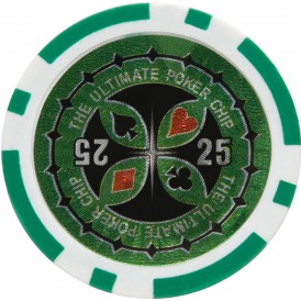 Вес фишки - 14гр. Вес фишки обеспечивается металлическим сердечником. Такая фишки приятно лежит в руках. Углубление под наклейку защищает фишку и изображение от стирания. Спустя годы фишка будет выглядеть как новой.
