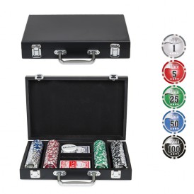 Комплект состоит из 200 фишек разных цветов. Каждый цвет соответствует обозначенному номиналу. Их сумма составляет 7775 единиц. Количество фишек вдвое больше, чем в обычном наборе, поэтому в партии могут участвовать больше игроков.