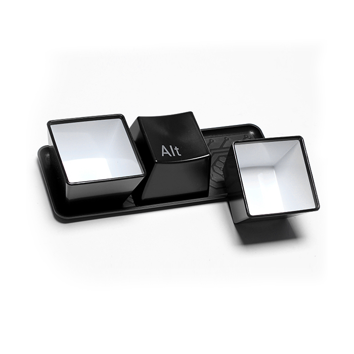 Оригинальный набор, состоящий из трех одинаковых чашек – практически идеальное приобретение для офиса. К чашечкам прилагается удобная подставка, служащая одновременно миниатюрным разносом. А если перевернуть предметы вверх дном, то взору открываются самые востребованные клавиши клавиатуры. "Ctrl+Alt+Del" это очень красивый и крайне полезный набор посуды, который органично впишется в рабочую обстановку и не будет отвлекать внимание излишней вычурностью.