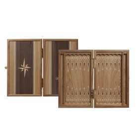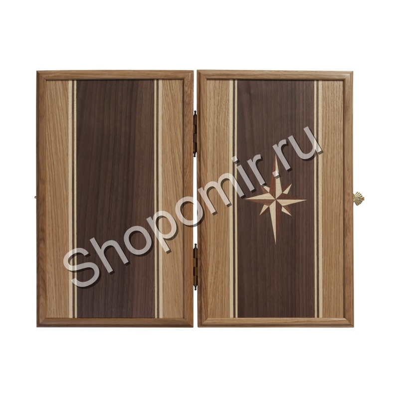Нарды Сенеж «Роза ветров» мини выполнены из массива северо-кавказского дуба, поэтому они отличаются прочностью и устойчивы к ударам и механическим повреждениям. Внешняя сторона доски декорирована минималистичным мозаичным изображением, которое составлено из разных пород дерева.