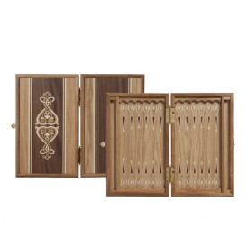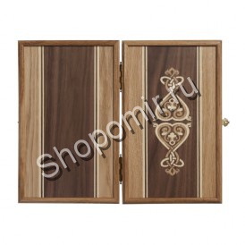 Нарды Сенеж «Русский узор» мини выполнены из редкой породы дерева – северо-кавказского дуба. Изящная структура дерева прекрасно сочетается с простым геометрическим узором, который украшает внешнюю поверхность доски. На игровом поле есть специальные лузы для компоновки фишек перед игрой. По краям расположены два отдела для хранения фишек. Благодаря им комплект удобно хранить и перевозить, не опасаясь поцарапать поверхность дерева.