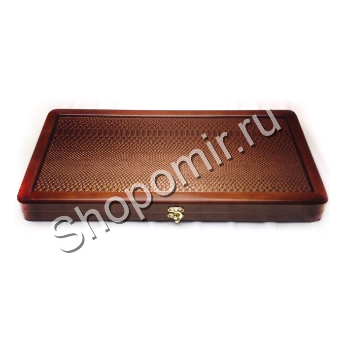 Складная доска нард изготовлена из дерева, снаружи отделка тисненой кожей темно-коричневого цвета - имитацией кожи крокодила, Поле доски украшено по центру витиеватым восточным орнаментом. Мы представляем интернет магазин, где вы можете выбрать и купить нарды. |