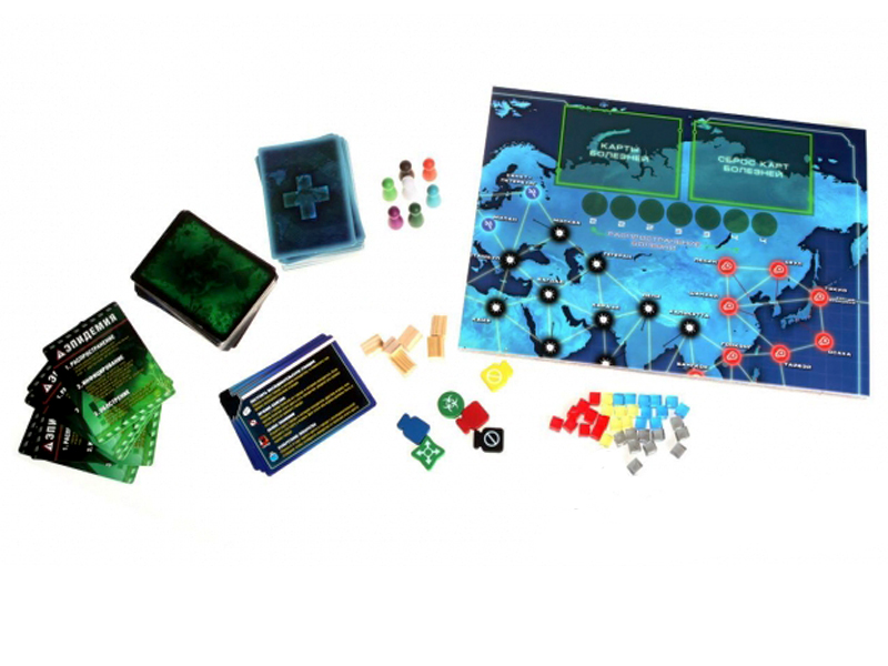 59 карт игроков (48 карт городов, 6 карт эпидемий, 5 карт событий)