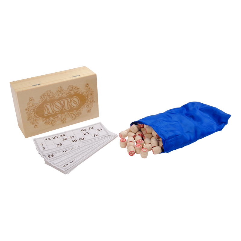 Ведущий вытаскивает из мешочка бочонок с цифрой и объявляет ее. Другие игроки должны быстро найти данную цифру в разложенных перед ними карточках. Первый, кто нашел, получает бочонок и накрывает цифру, а после накрывания целой линии объявляет, что первый этап закончен. Игра продолжается до тех пор, пока один из игроков не закроет полностью всю карточку. Комплект бочонков складывается в красивую шкатулку из дерева, на которой нанесена изящная гравировка.