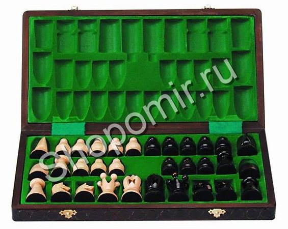 наборе равна 75 мм, а все шахматные фигуры аккуратно расположены в бархатном