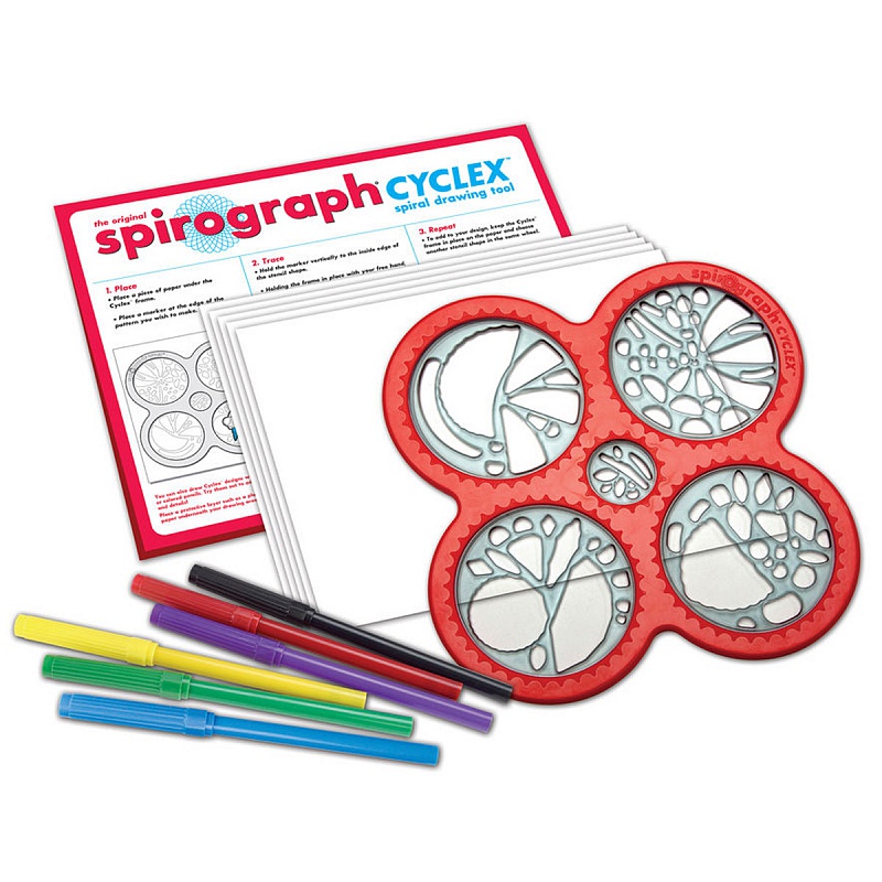 Устройство создано разработчиком классической версии спирографа Денисом Фишером. Здесь содержатся абсолютно все, необходимое для создания невероятно сложных орнаментов, основанных на переплетении спиральных элементов. Его по достоинству оценят дети от 8 лет и старше, а также взрослые.